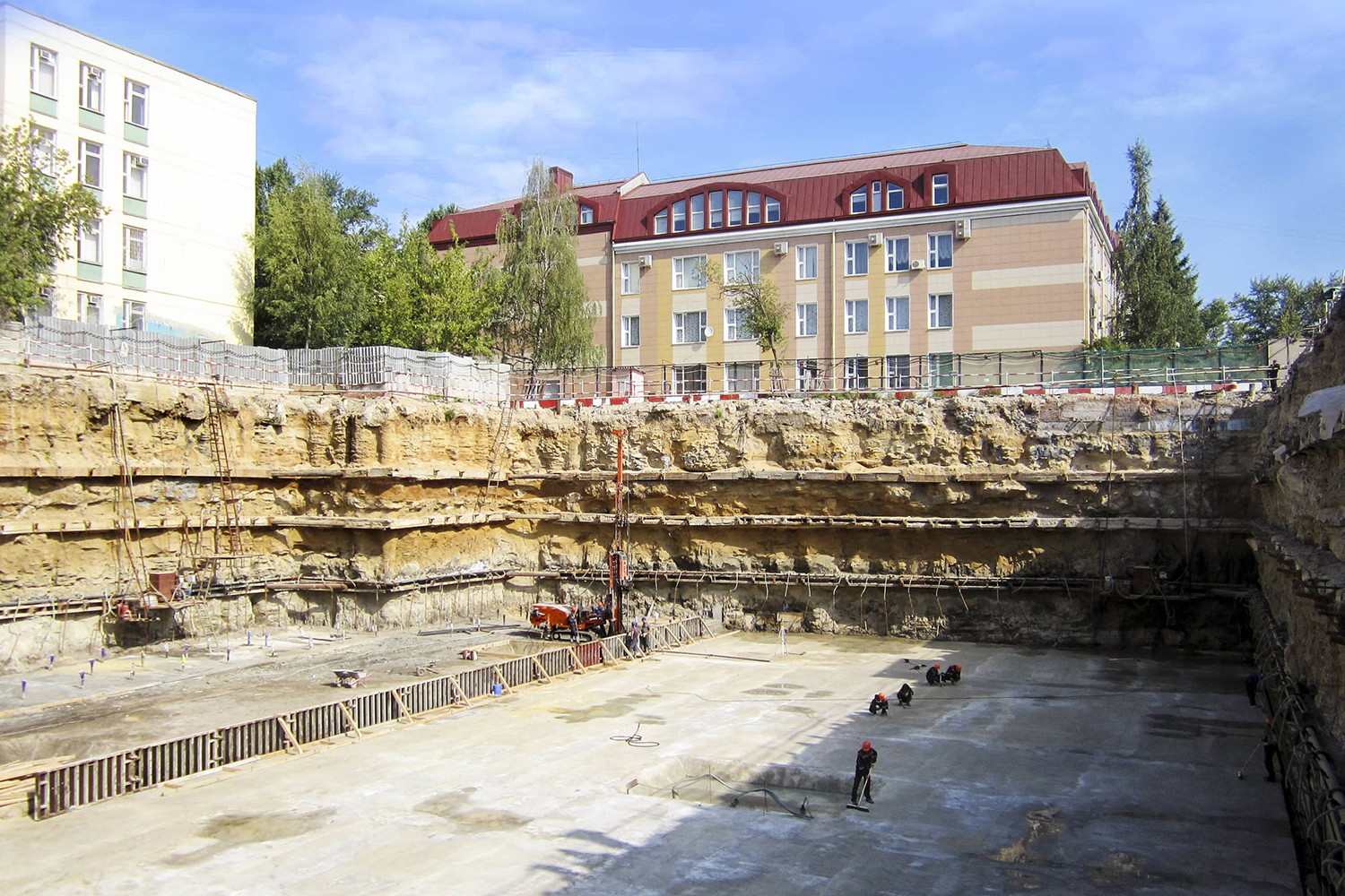 Строительство котлованов в условиях чрезвычайно плотной городской застройки имеет свои особенности. В первую очередь это касается невозможности устройства ограждений котлованов с помощью забивки свай или шпунта из-за негативного воздействия на окружающие здания. При устройстве котлованов в черте города необходимо учитывать его влияние на окружающую застройку, инженерные коммуникации и метро. Рассмотрим основные типы ограждающих конструкций применяемых для крепления бортов котлованов.